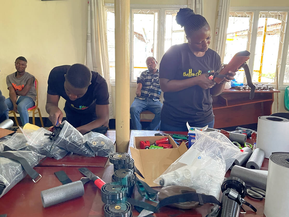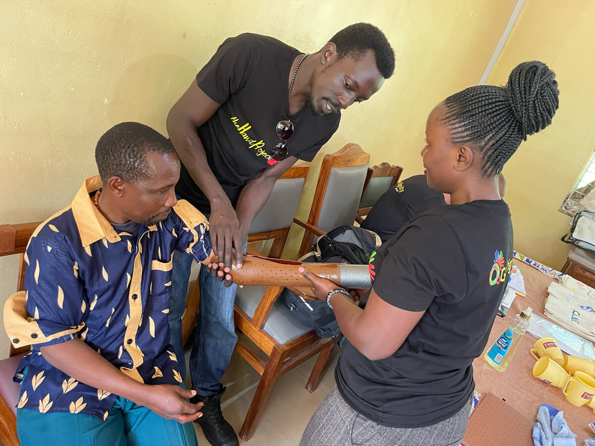 Nach dem Teambuilding werden die fertigen Prothesen und gestalteten Taschen in Entwicklungsländer verschickt, wo sie von Mitarbeitern des Hand Projects persönlich an die bedürftigen Empfängerinnen und Empfänger übergeben werden. Die Anpassung vor Ort ist wichtig, damit sie ihre volle Funktionalität entfalten können. Außerdem erhalten die Empfängerinnen und Empfänger ein Training im Gebrauch der Prothesen. Dies stellt sicher, dass sie diese effektiv nutzen können. Diese Phase ist entscheidend, um die Nachhaltigkeit und den langfristigen Nutzen der Prothesen für die Empfängerinnen und Empfänger zu gewährleisten.